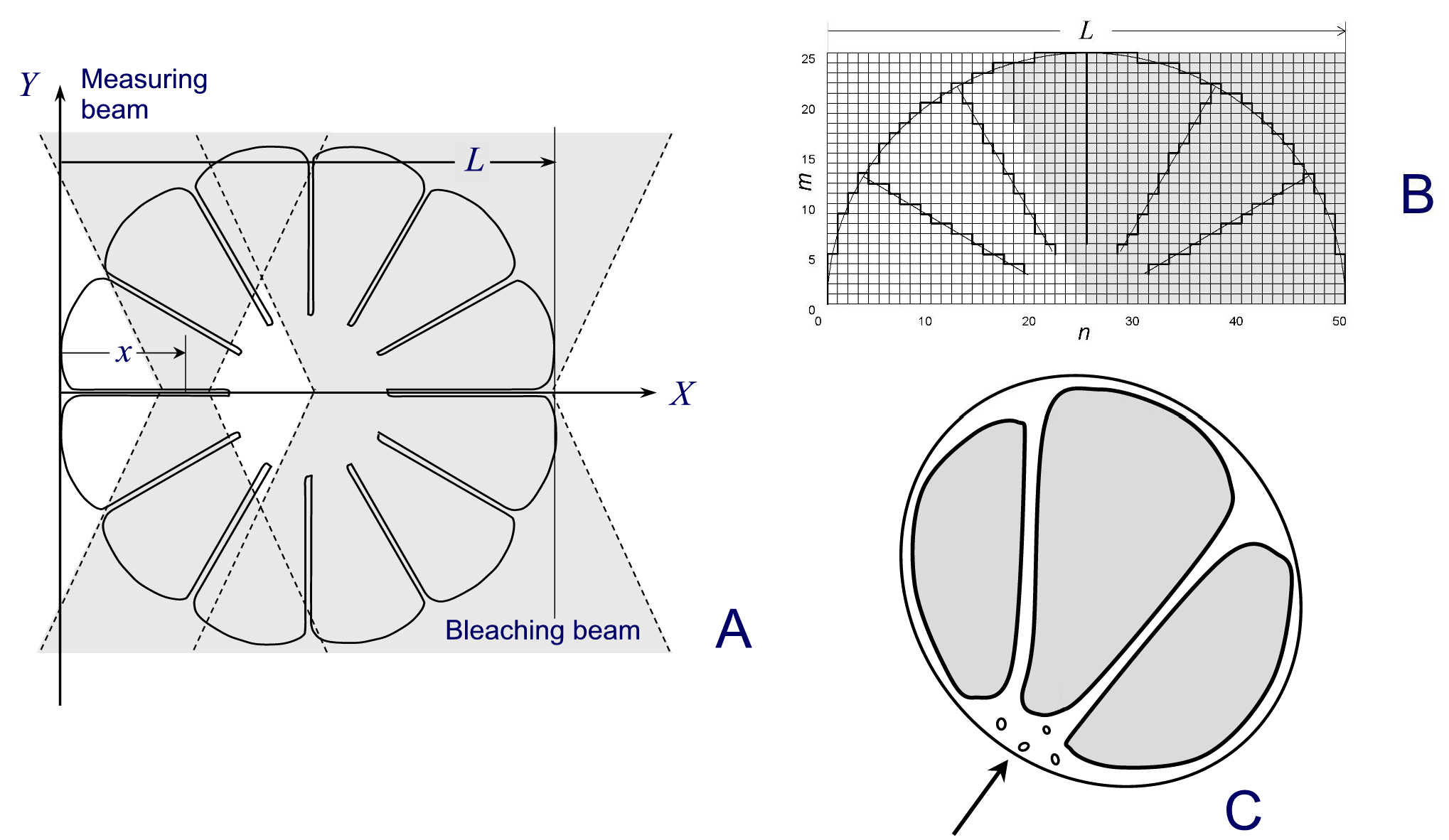 incisures on the rate of rhodopsin diffusion. Shaded wedge-shaped areas
