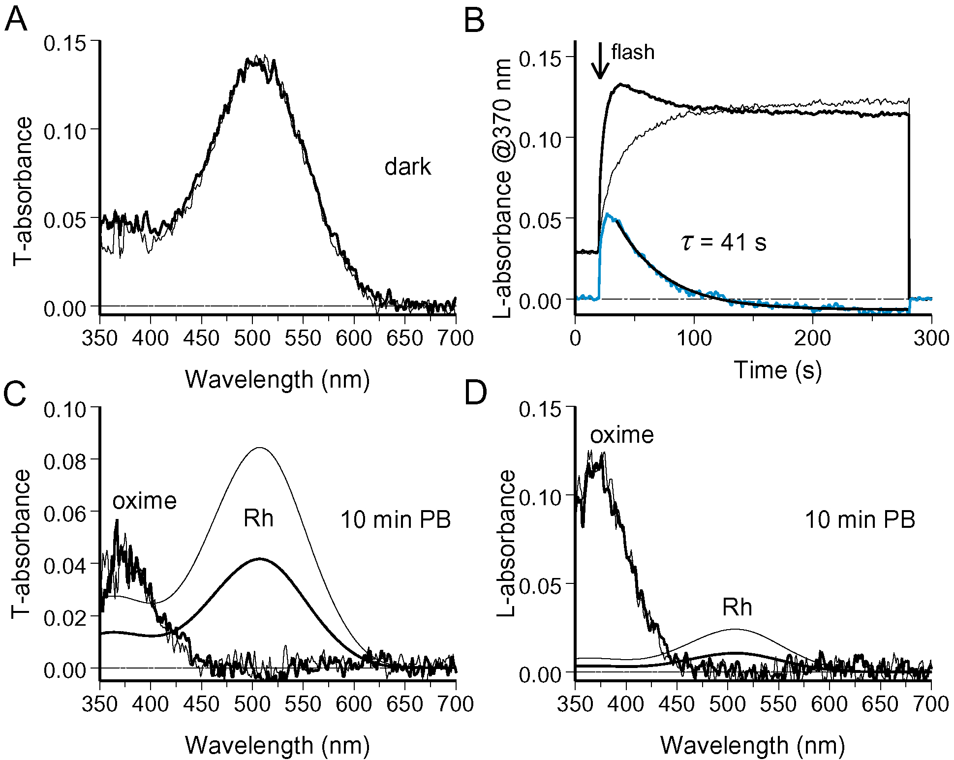 trace formation and subsequent equilibration of retinaloxime. C, D