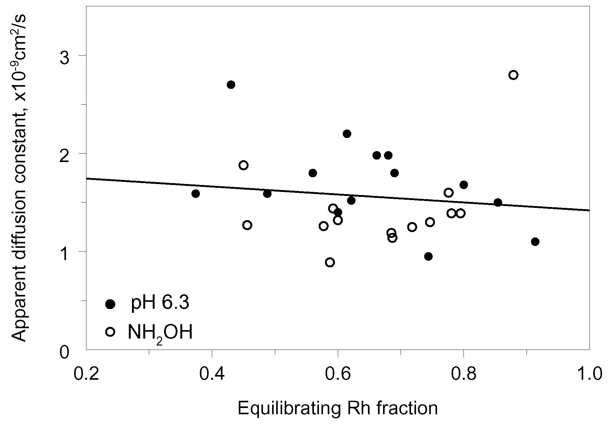 circles indicate Ringer pH 7.5+50 mM hydroxylamine. Linear regression