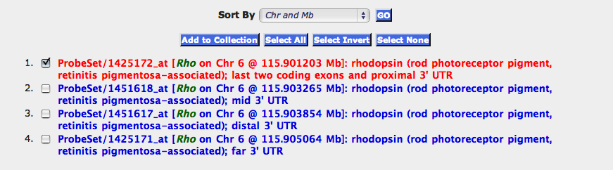 with a list of seven probe sets, four of which target different parts of the rhodopsin transcript. By default the probe sets