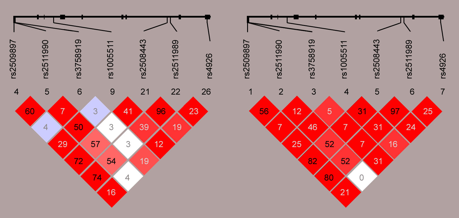 (left) and Mayo subjects (right). A similar LD pattern was observed for