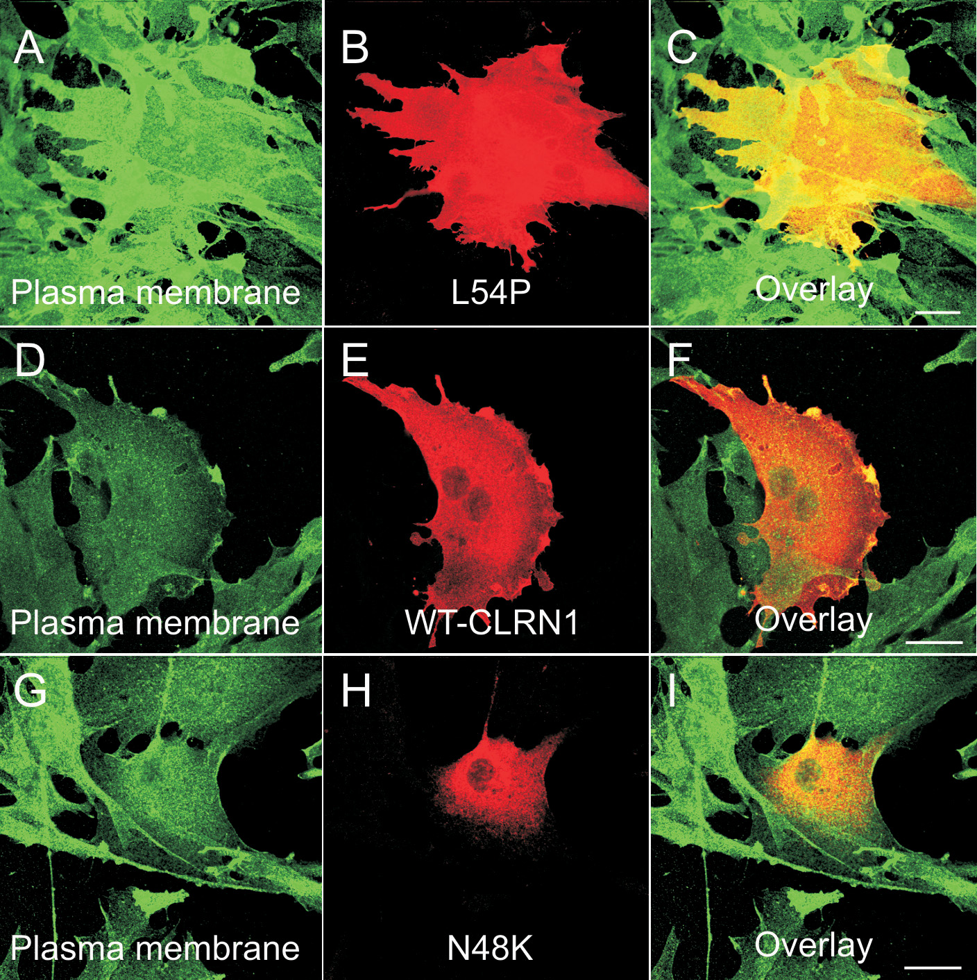 p.L54P mutated CLRN1-HA (B) and the known disease-causing p.N48K
