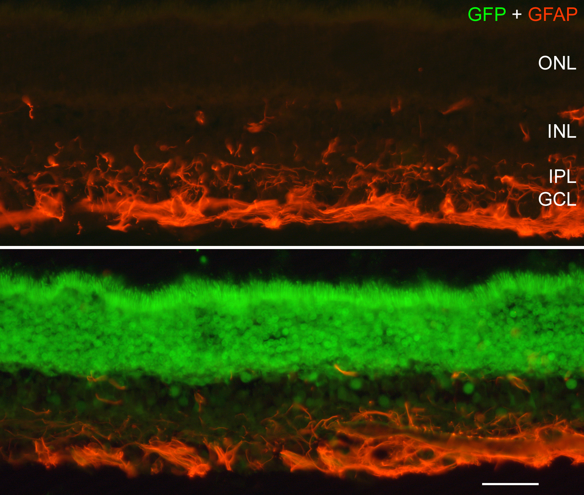 scAAV2/5-injected eyes. The similarity in GFAP immunoreactivity between