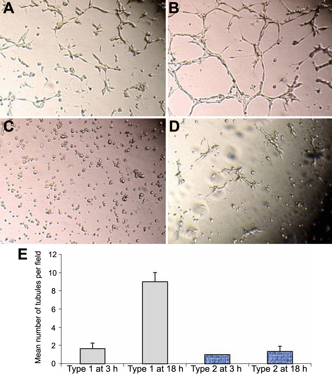 fibroblasts do not respond to exogenous VEGF after 3 h (C) and after 18 h (D). The number of tubules formed on