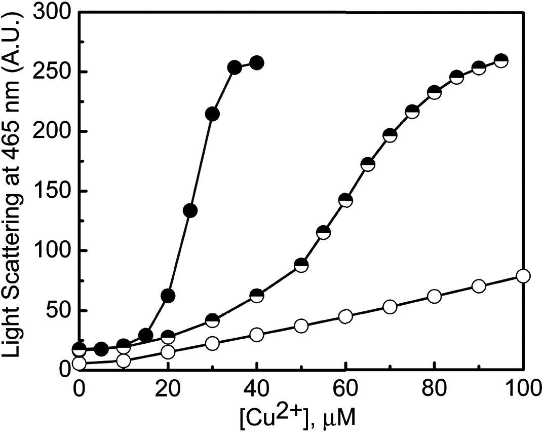 increasing Cu2+ concentration at 37 °C in buffer B was