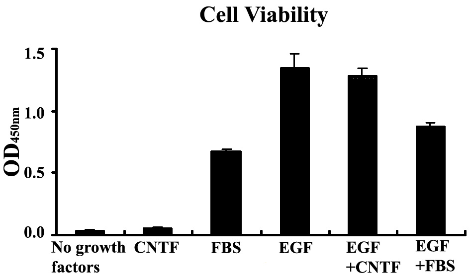 used in the current study. These consisted of no added growth factors, 10 ng/ml CNTF alone, 10% FBS alone, 20 ng/ml EGF alone,