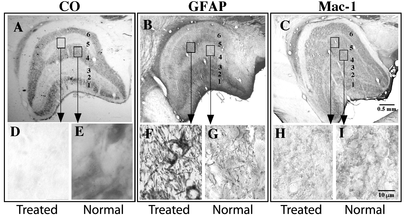 for CO (D, E), GFAP (F, G), or MAC-1 (H,