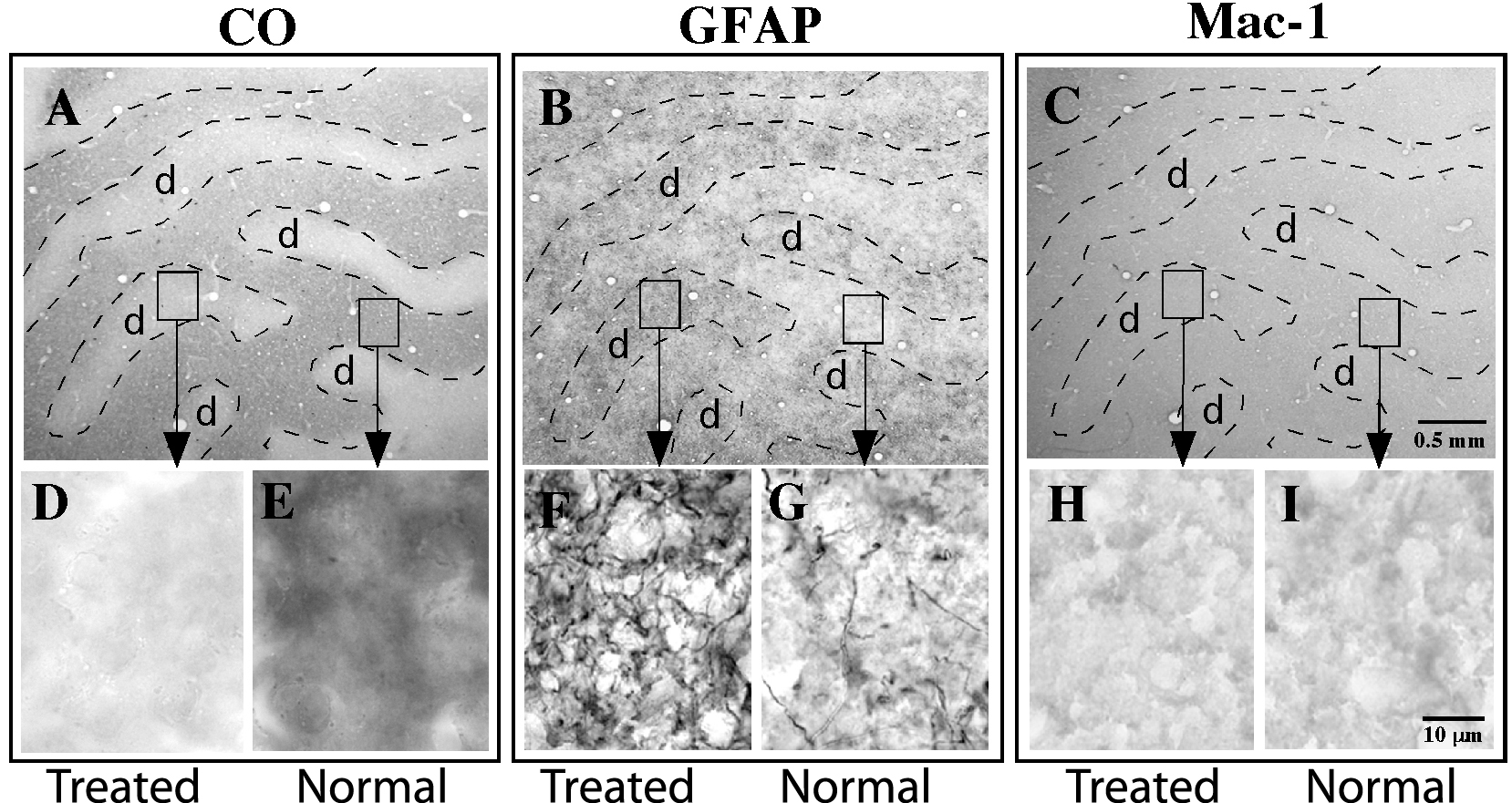 eye bands (d) demonstrate lighter, less dense CO staining. B: A