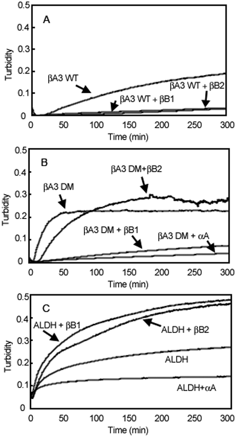 β-crystallin complexes. Samples were heated at 55 °C and the turbidity