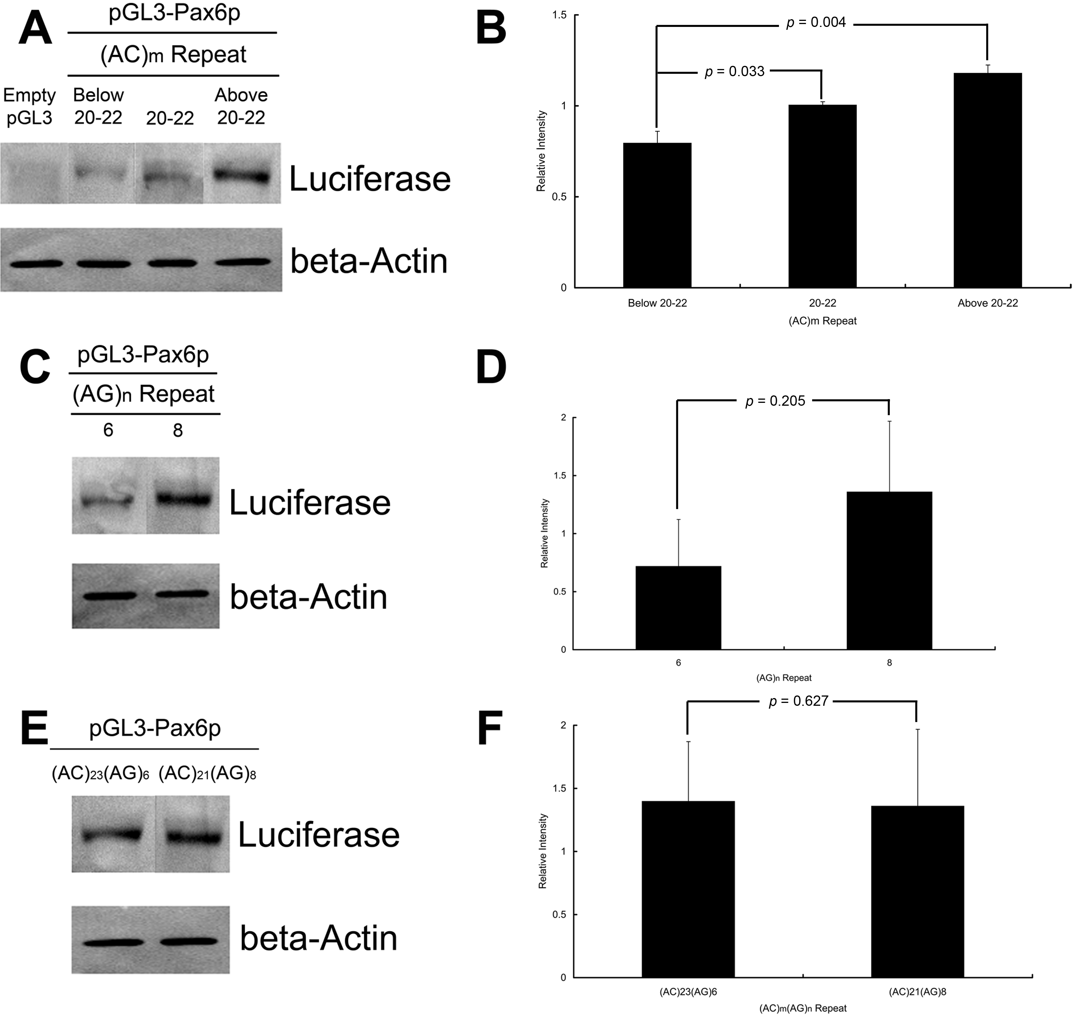relative luciferase activity for (AG)n repeats with (AC)21.