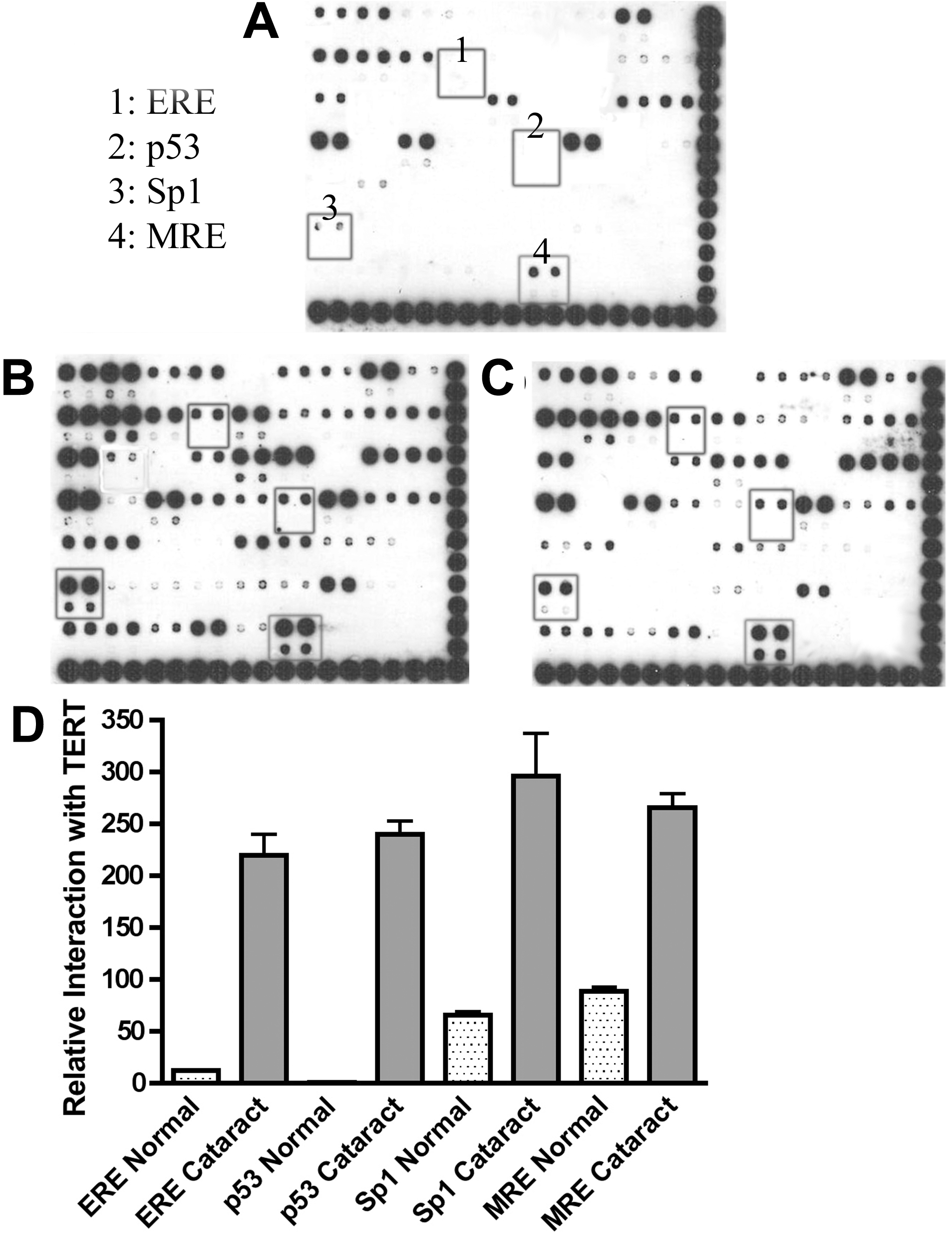 TERT with ERE, p53, Sp1, and MRE. The cataractous samples had higher