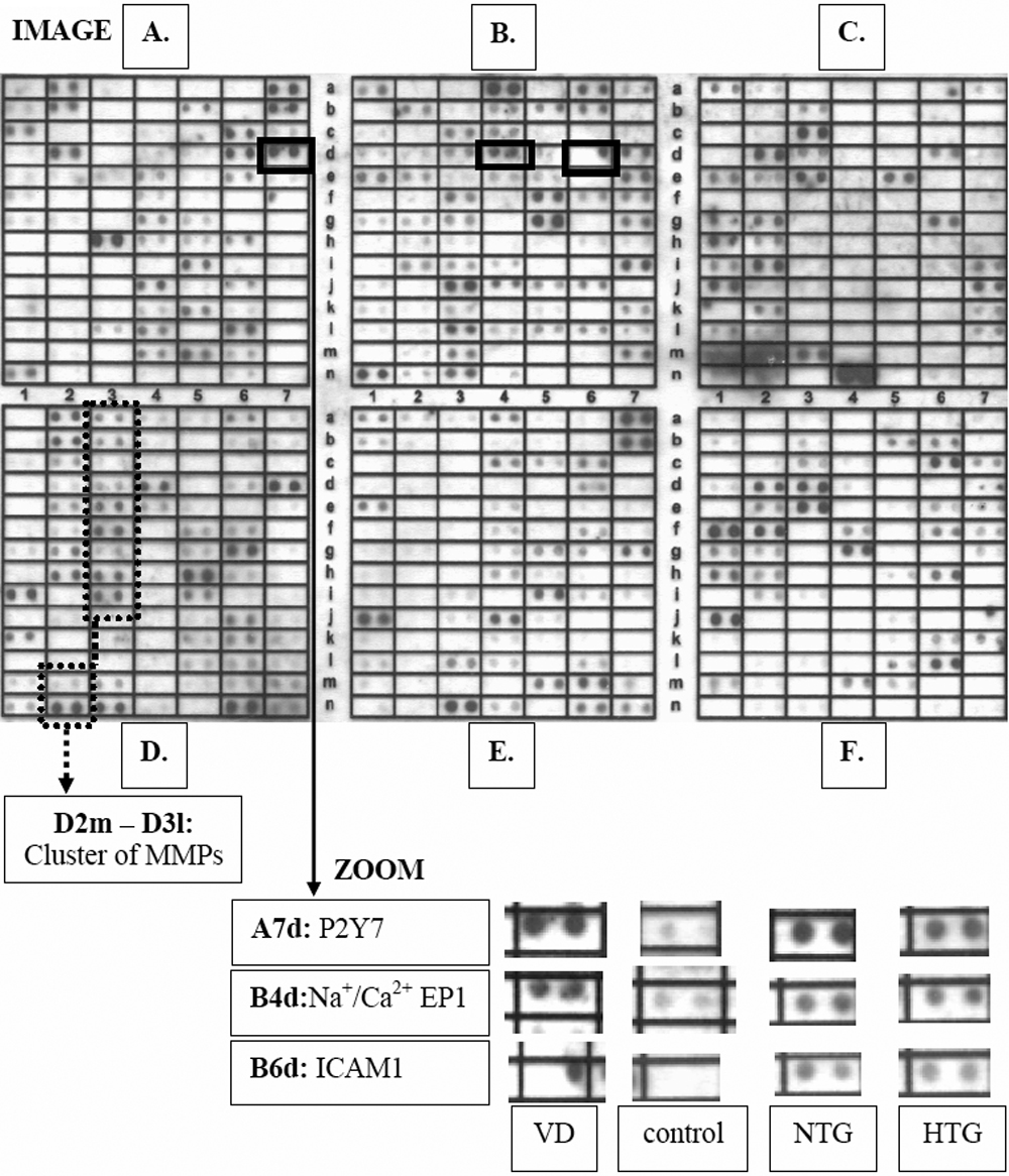 double spots marked with black frames show the most stable expressional difference in vascular deregulation (VD), normal-tension