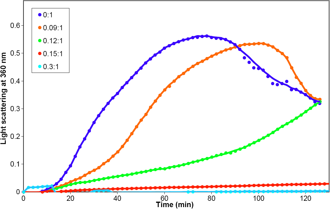 were incubated in 50 mM sodium phosphate buffer, 0.03% (w/v) NaN3, pH 7.2 at 60 °C. The molar ratios of βL-crystallin:dogfish α-crystallin are indicated.