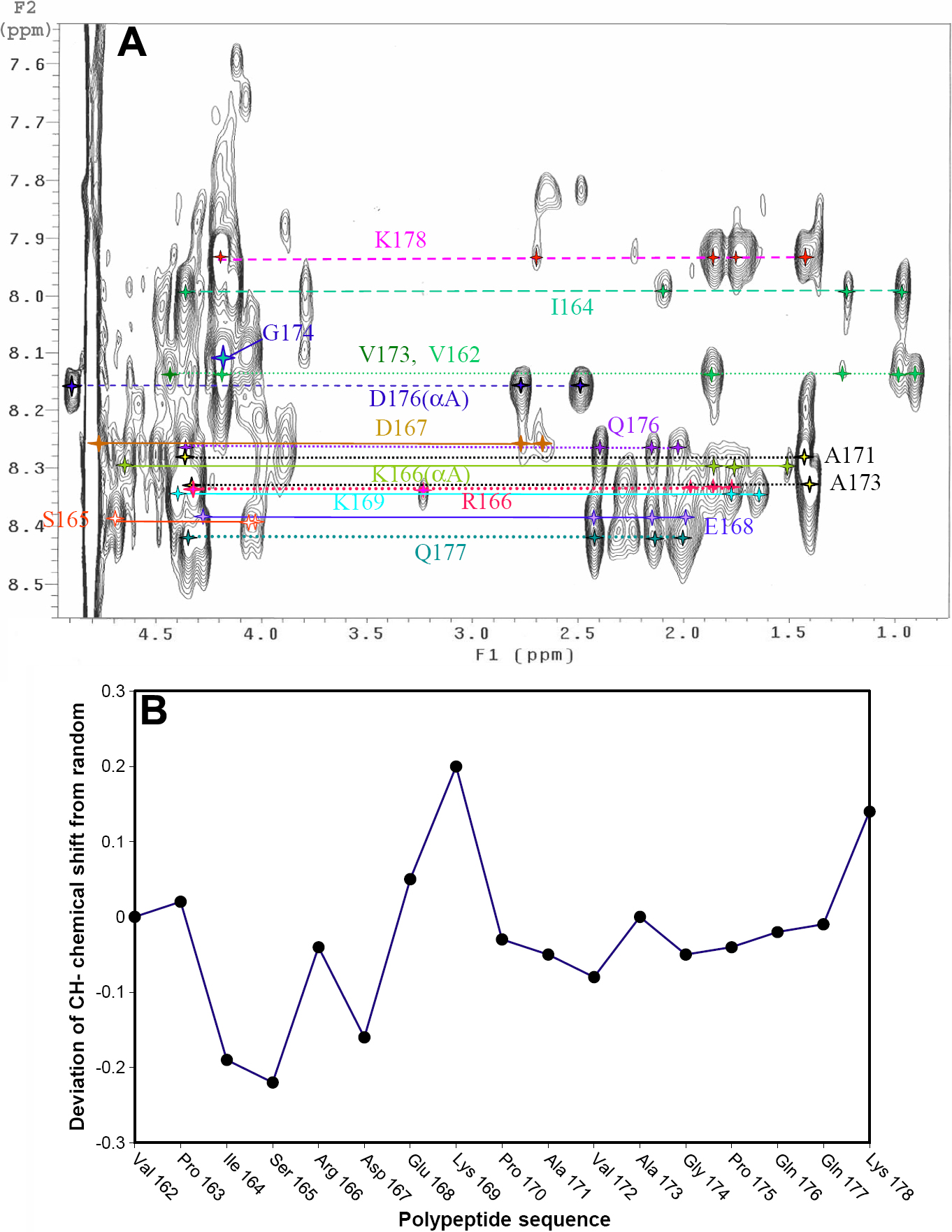 1H proton region of the TOCSY spectrum of dogfish α-crystallin at 25 °C. The assignments are indicated for the αB subunit.