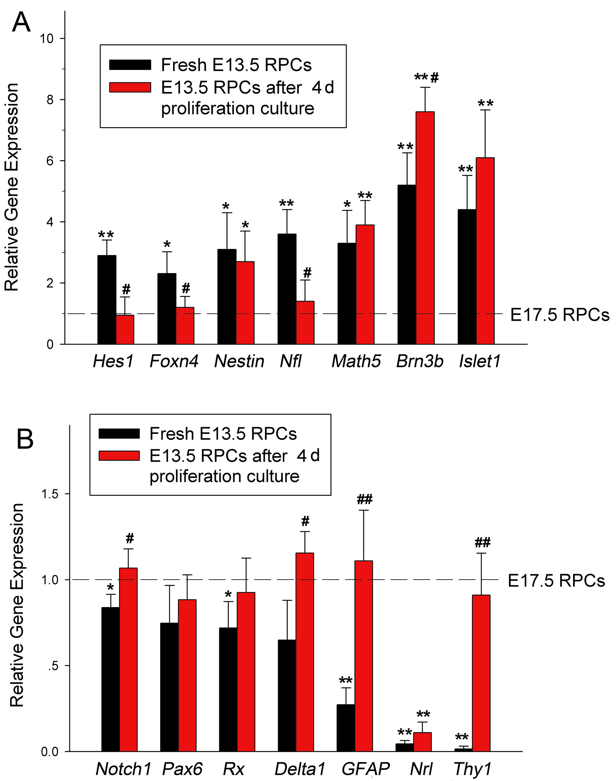 (RPCs) relative to fresh E17.5 RPCs. Expression of each gene in freshly