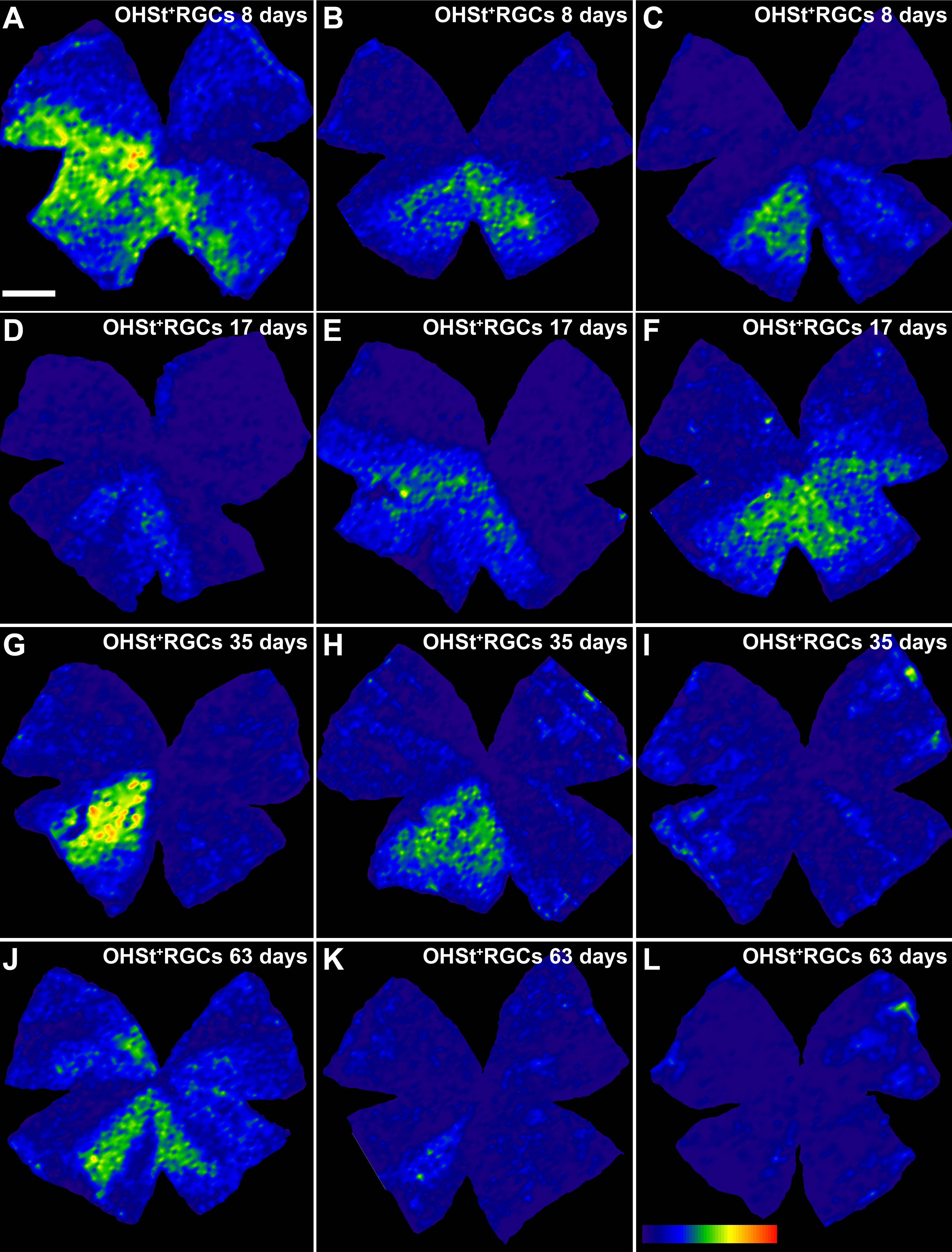 (dark blue) to 5,625 RGCs/mm2 or higher (red). For all