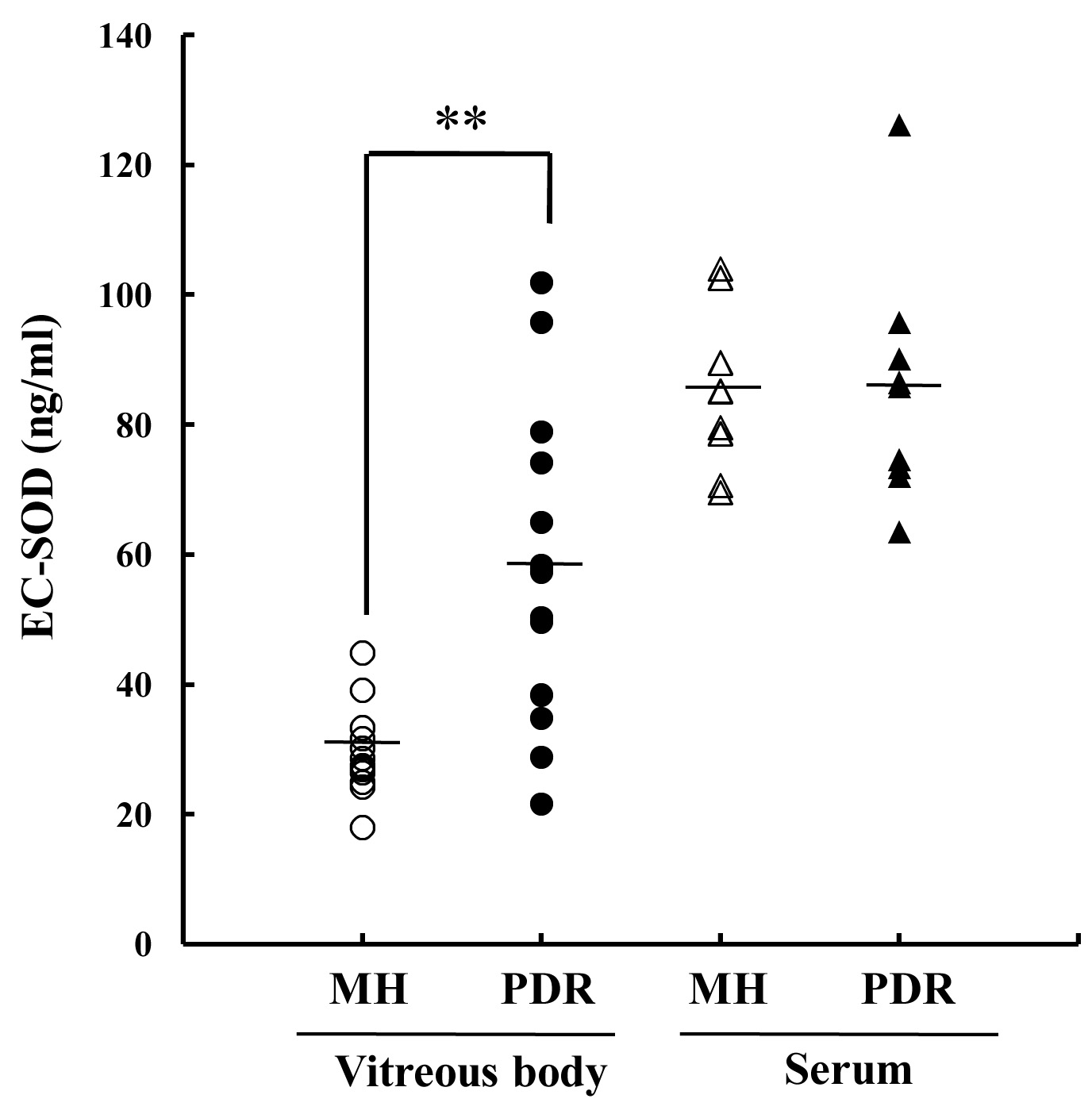 PDR patients, there was abundant EC-SOD compared to vitreous bodies