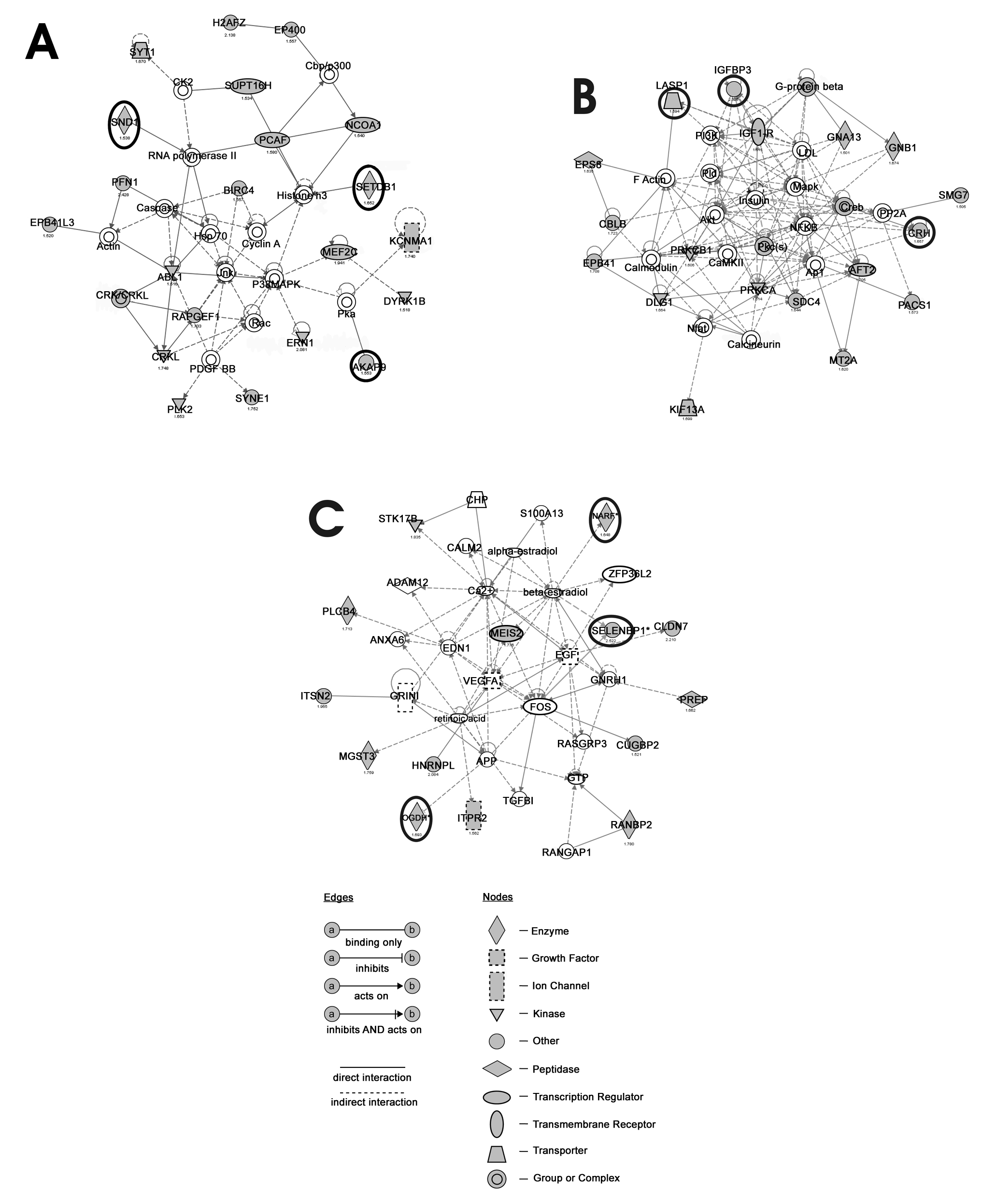 Figure 1. Networks predicted by Ingenuity Pathway Analysis in the homozygous Egr-1 knockout mice. Networks proposed by Ingenuity Pathways
