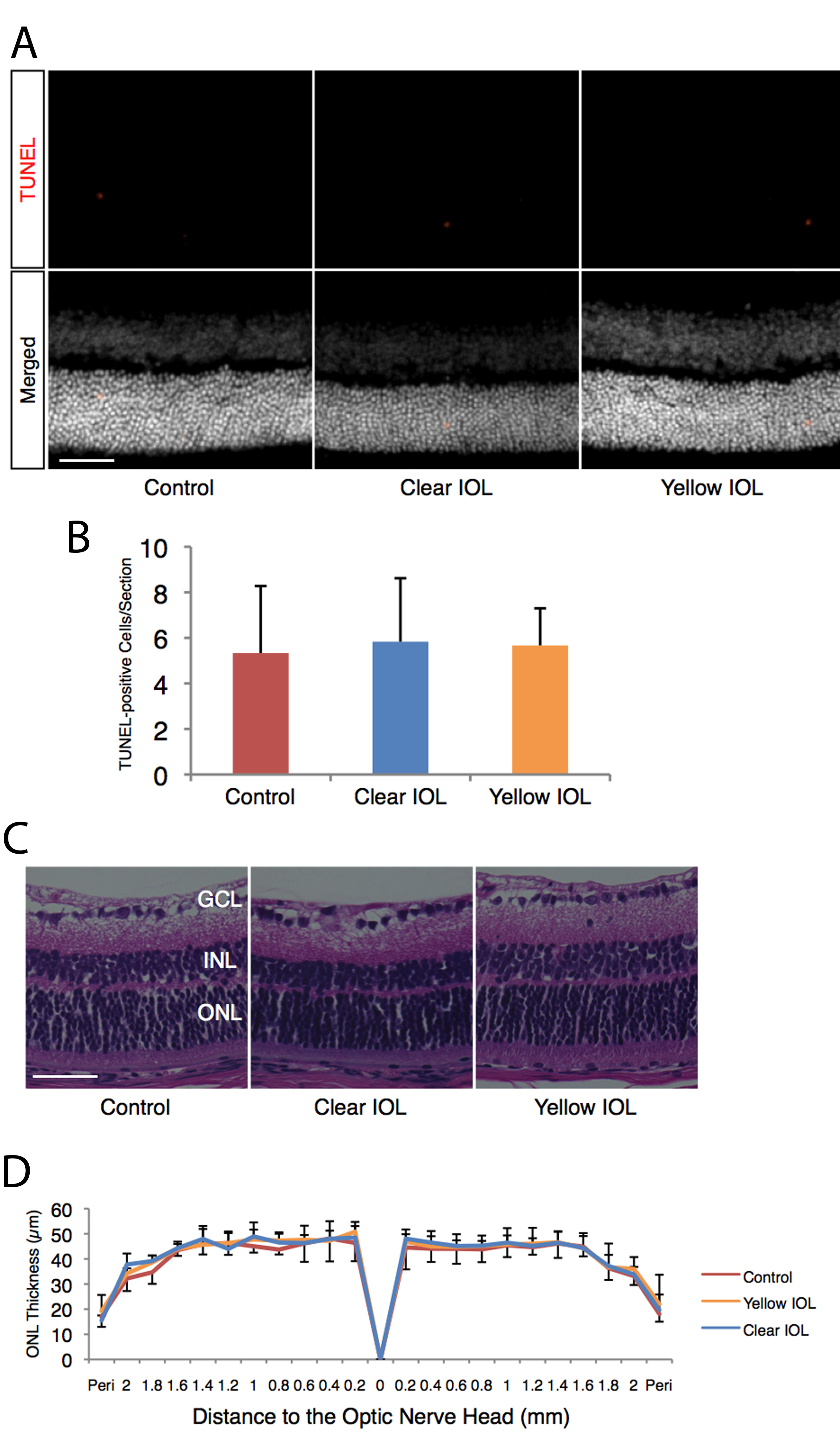 sensory retina in murine IOL-implanted eyes and control eyes without