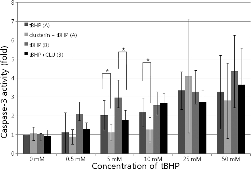 Figure 6. Effects of clusterin on the caspase-3 activity in cultured human corneal endothelial cells. Activation of caspase-3 was determined