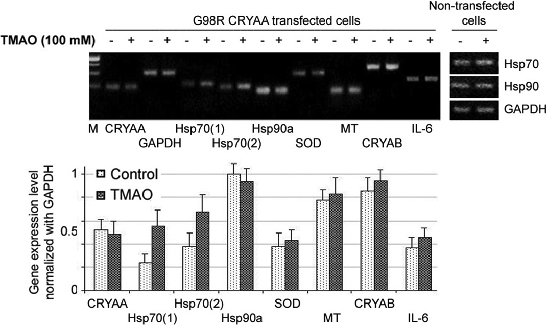 specific upregulation of Hsp70 in G98R CRYAA cells treated with TMAO, whereas other stress-inducible genes remained unchanged. No changes were found for