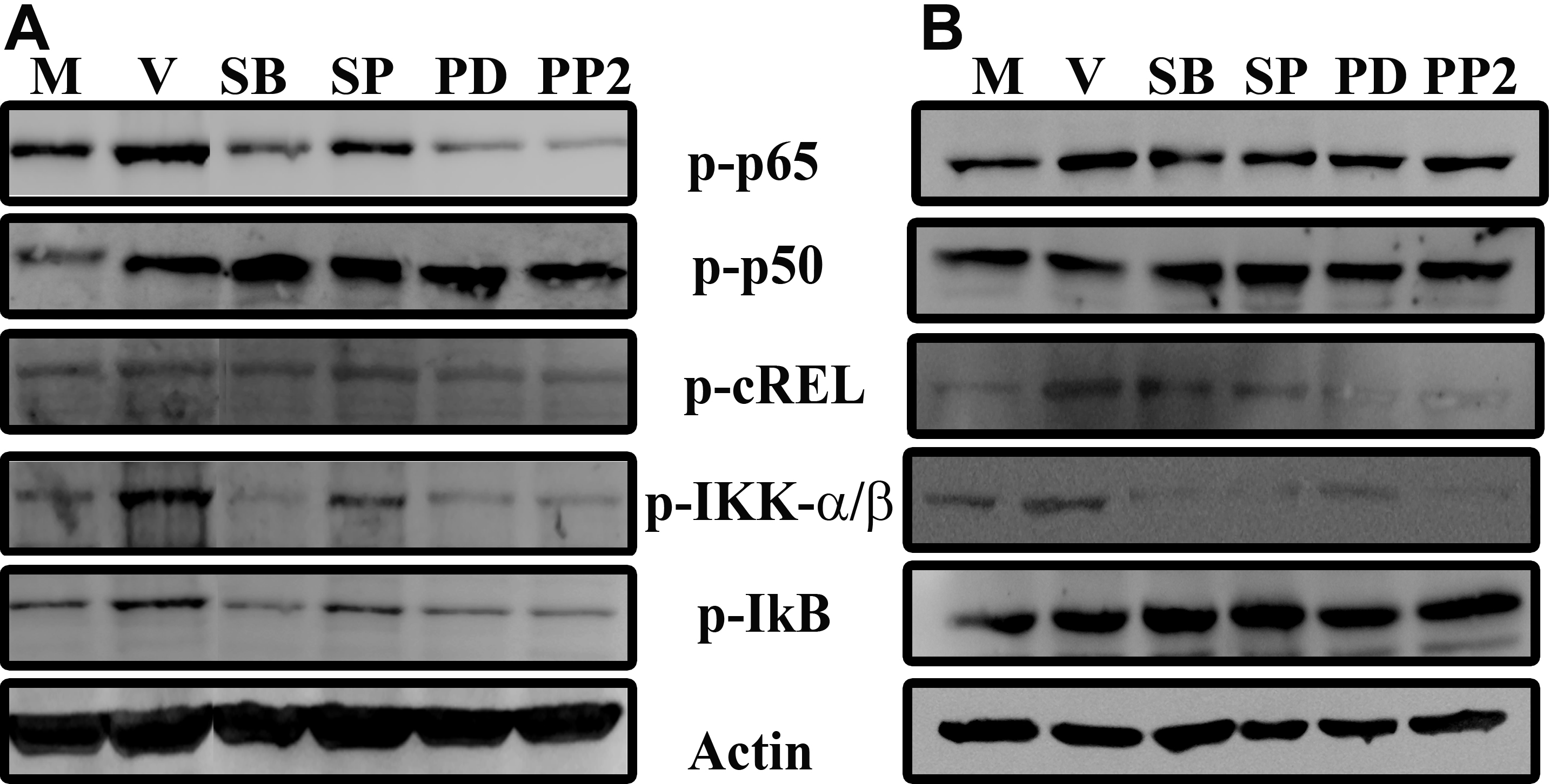 by SB, PD, and PP2 but SP only partially reduced the activation of NFκB