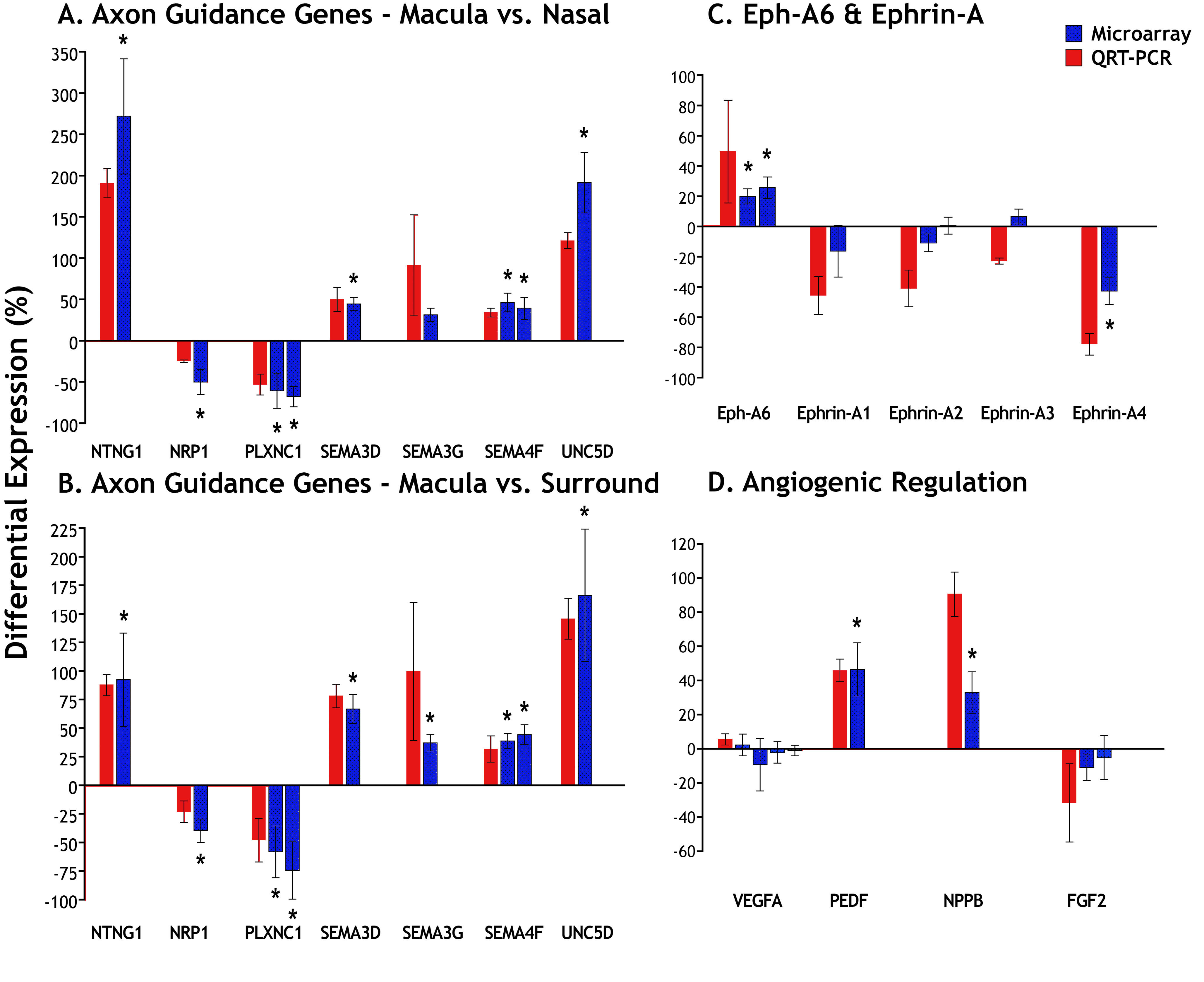 expression. Microarray data are indicated by blue bars and QRT–PCR data