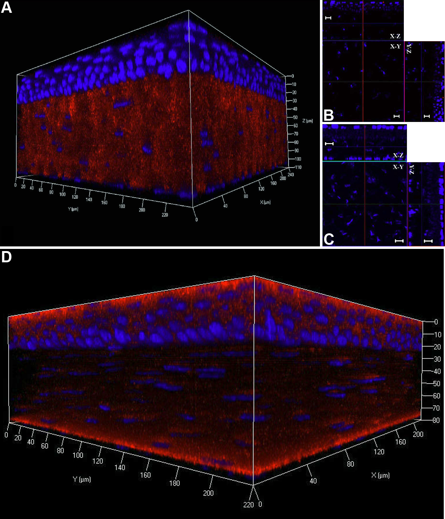 corneal stroma was labeled by goat anti-keratocan Alexa555 conjugate