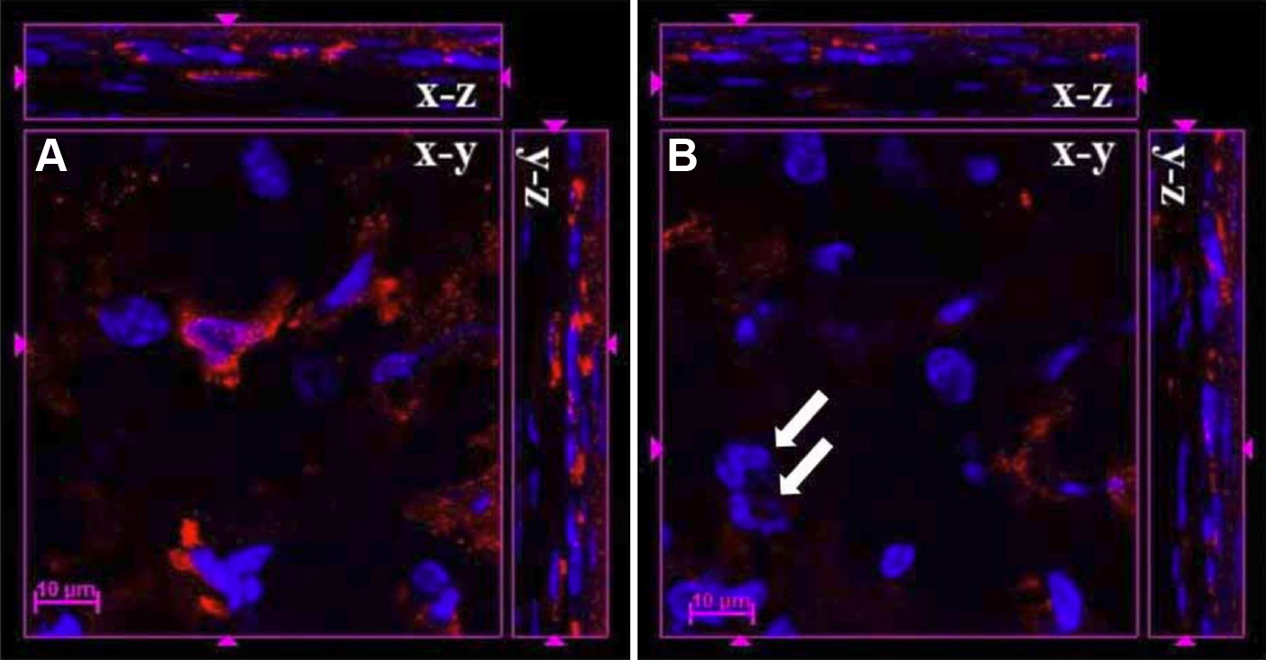 shown in the XZ and YZ planes of the cut view of Z-stack CLSM images.