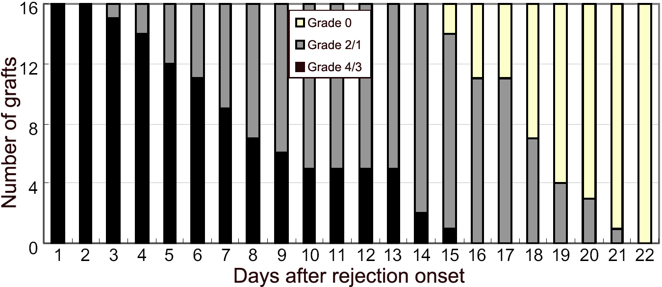 Grade 4/3 (black) represents grafts rejected, grade 2/1 (gray)