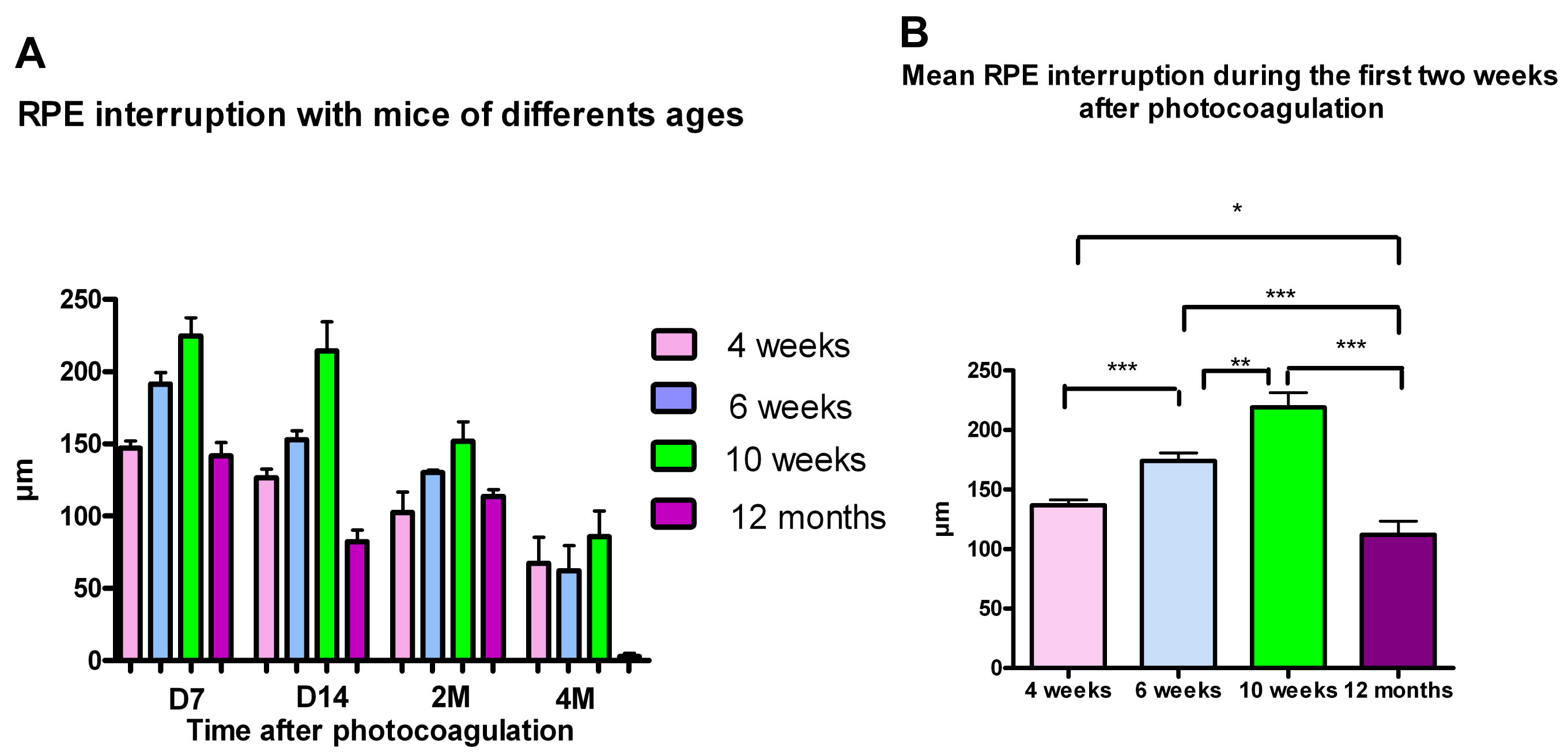 photocoagulation. Size of RPE interruption was evaluated for mice from