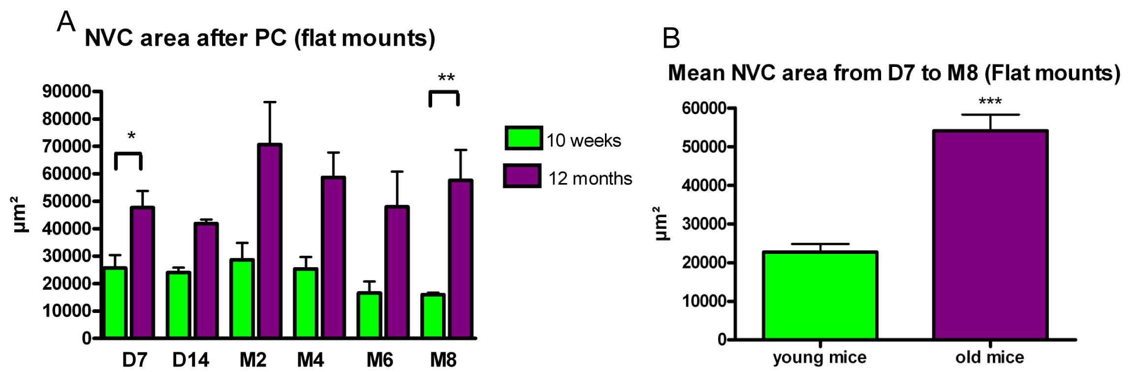 neovascularization reaction in young adult (group III) and old mice