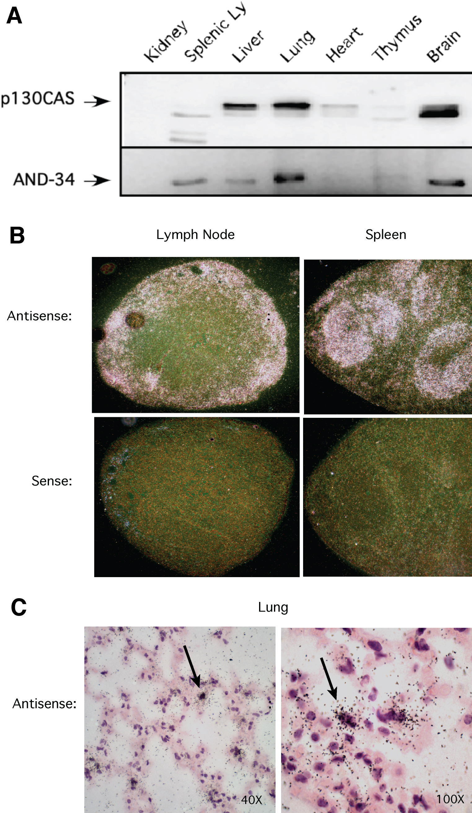 organs with polyclonal anti-AND-34 antibody whereas p130CAS was