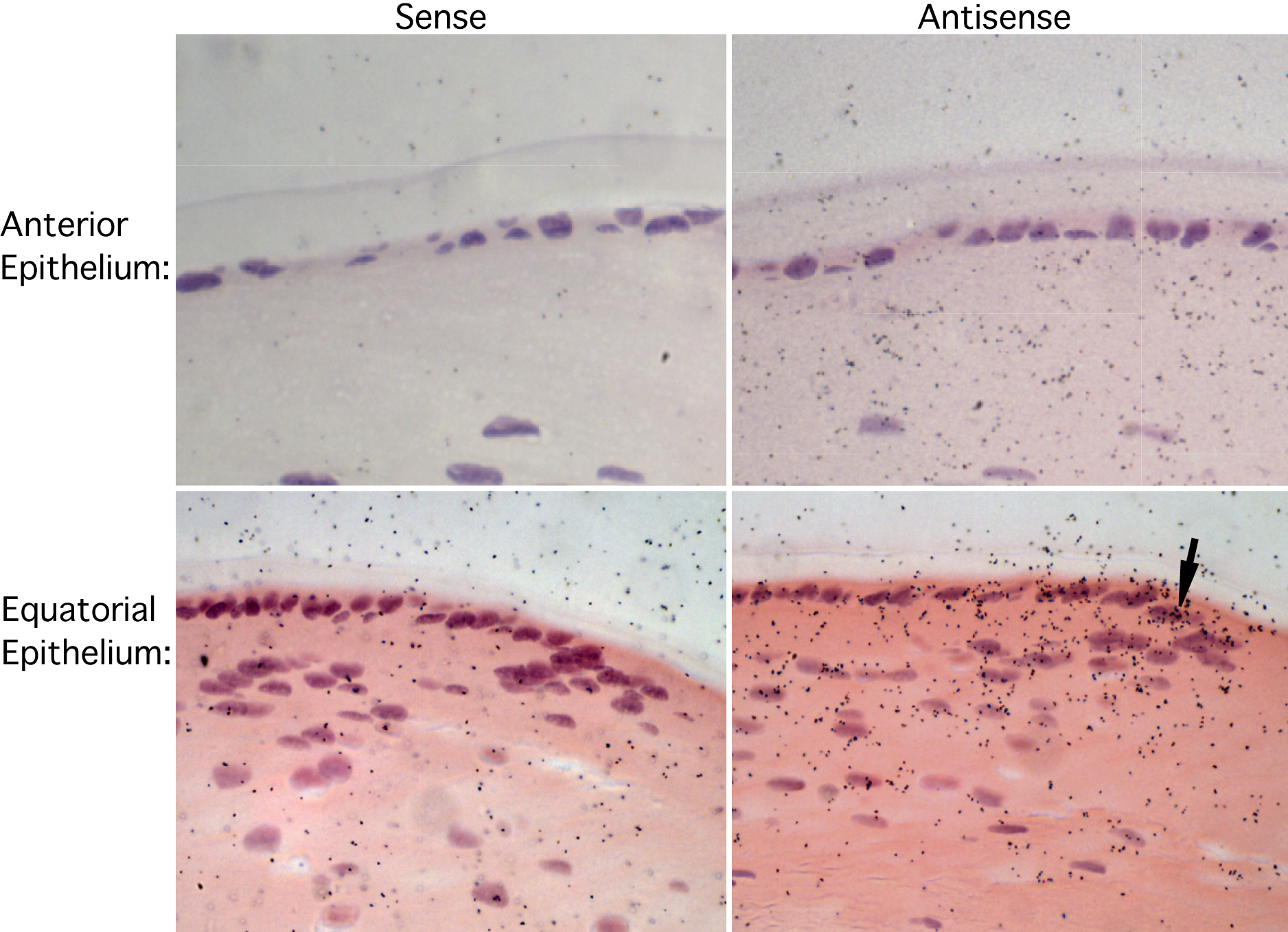 transcript in lens tissue. Eyes from AND-34+/+ mice (two