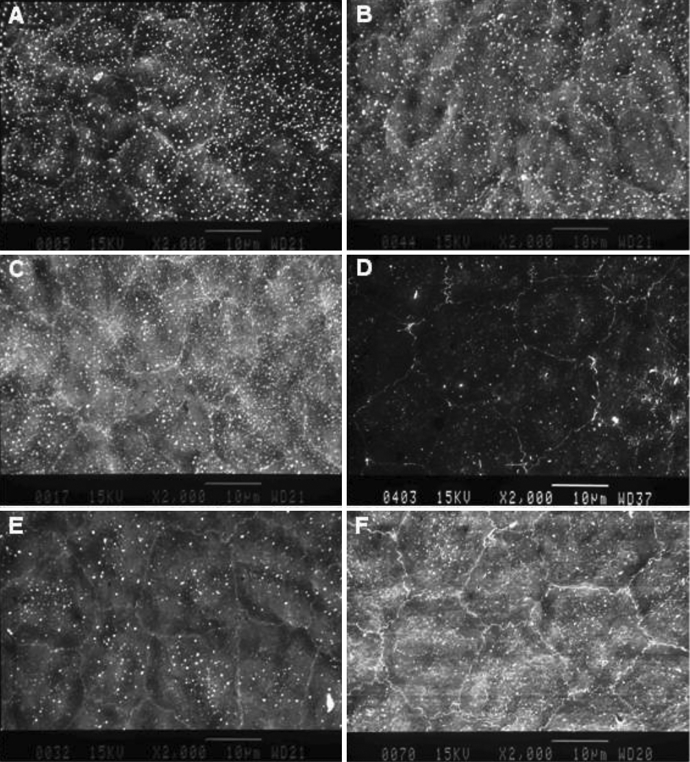 groups (A and B, respectively) displayed the morphology of endothelial cells, which was hexagonal and uniform, with numerous microvilli located