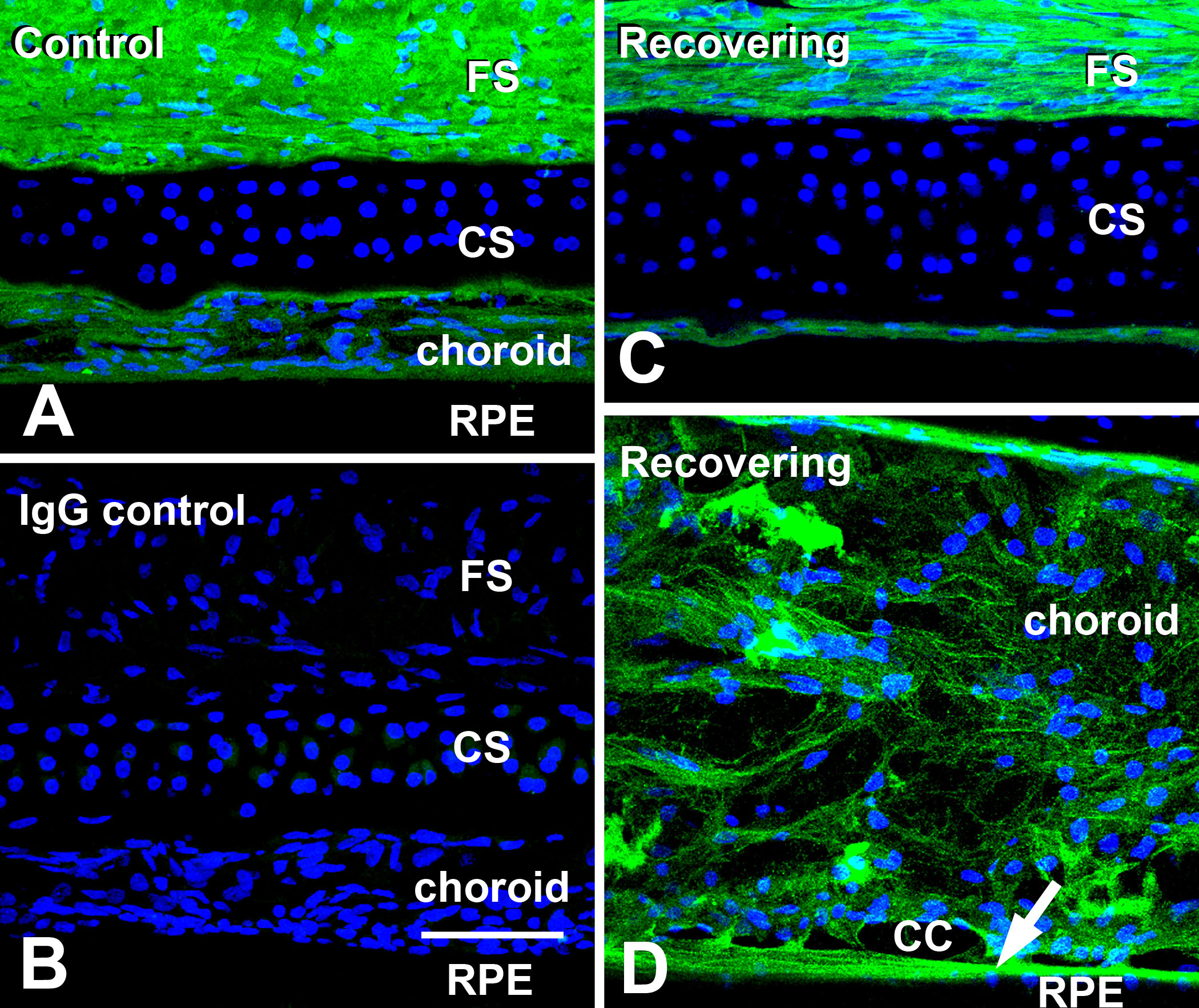 immunolabelling in the sclera of a recovering chick eye is shown in a