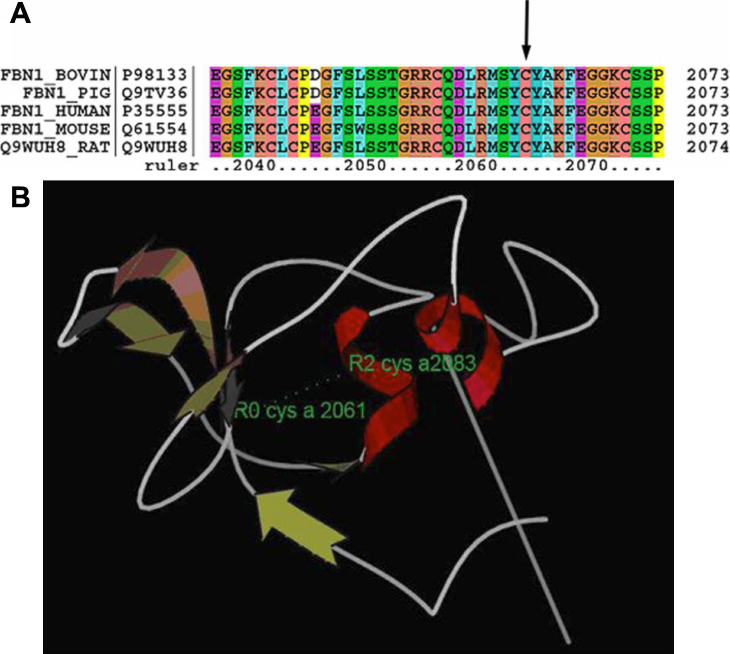 residues (C2061 and C2083) are colored green. The disulfide bond is