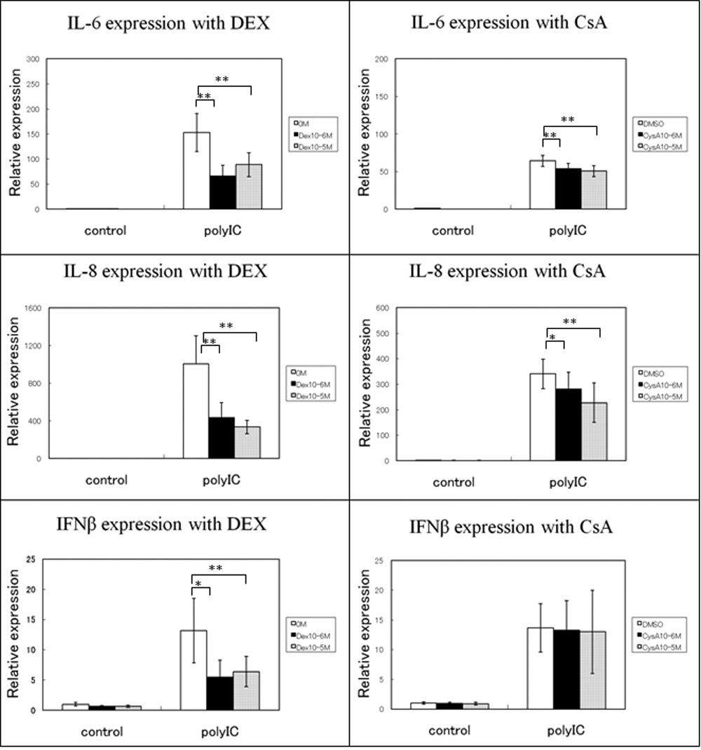 from HCECs cultured with or without of DEX or CsA for 24 h and stimulated with poly(I:C) for 24 h. The expressions of the