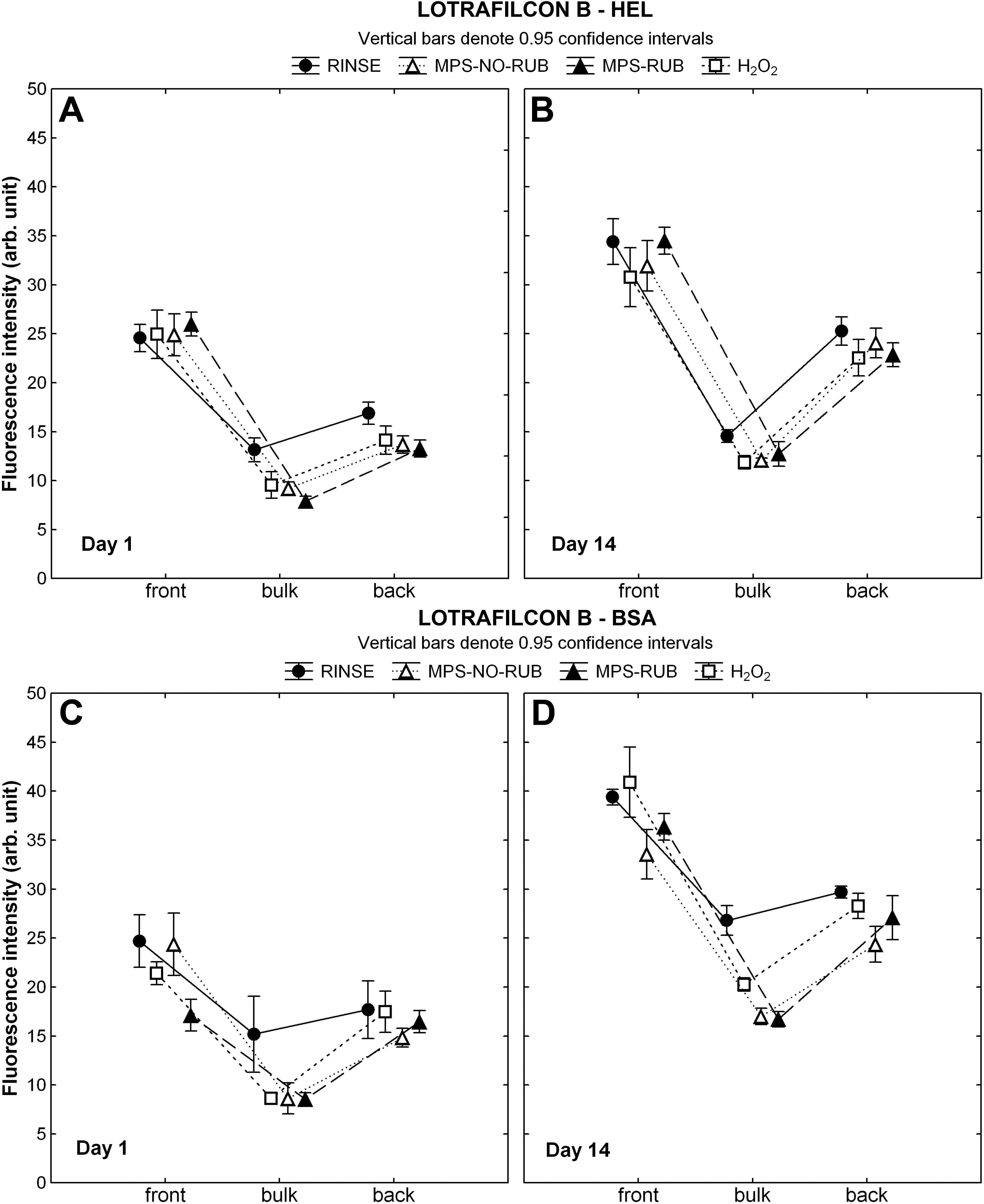 surface of lotrafilcon B after one and 14 days of incubation. Lenses