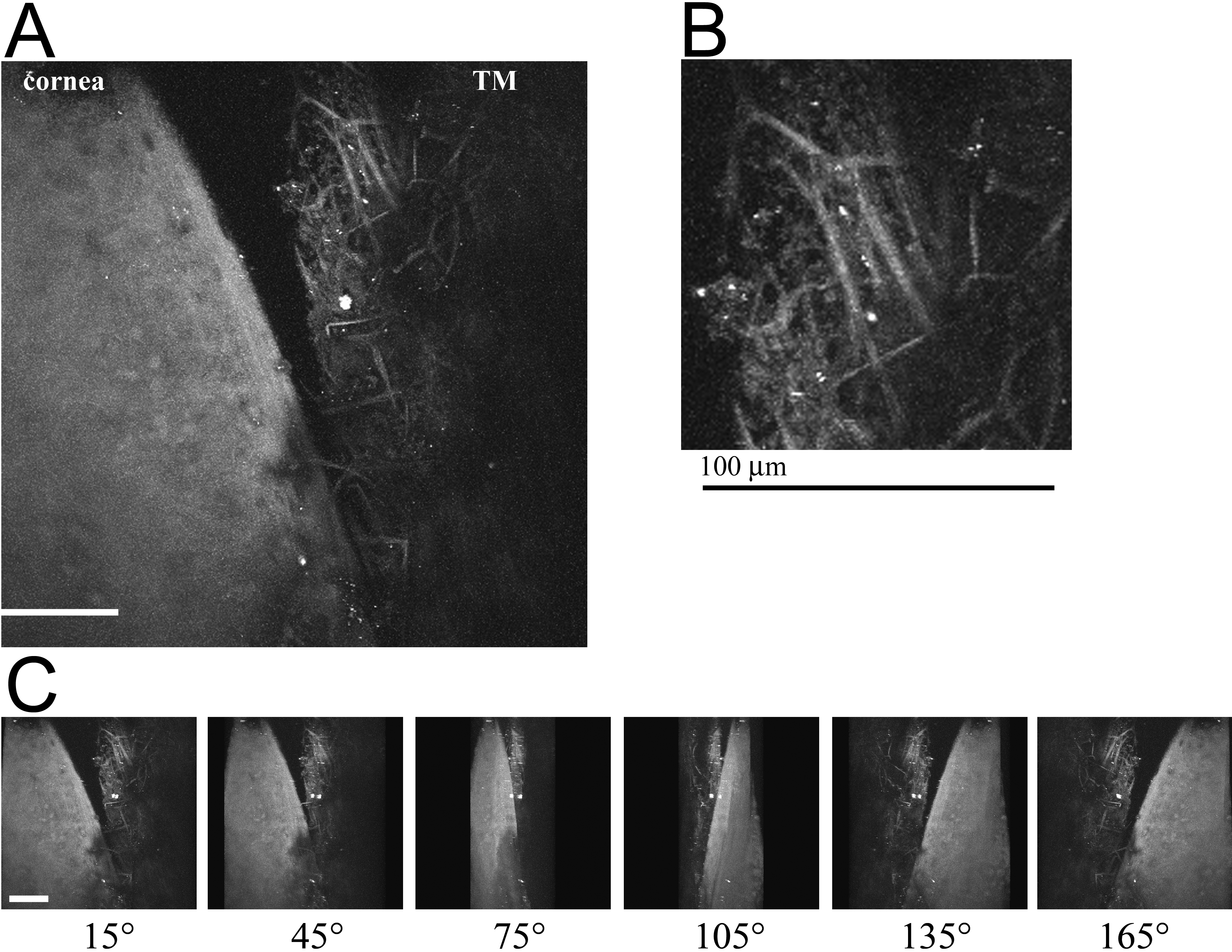 cornea/TM region of a human eye from a 73-year-old donor. A section of