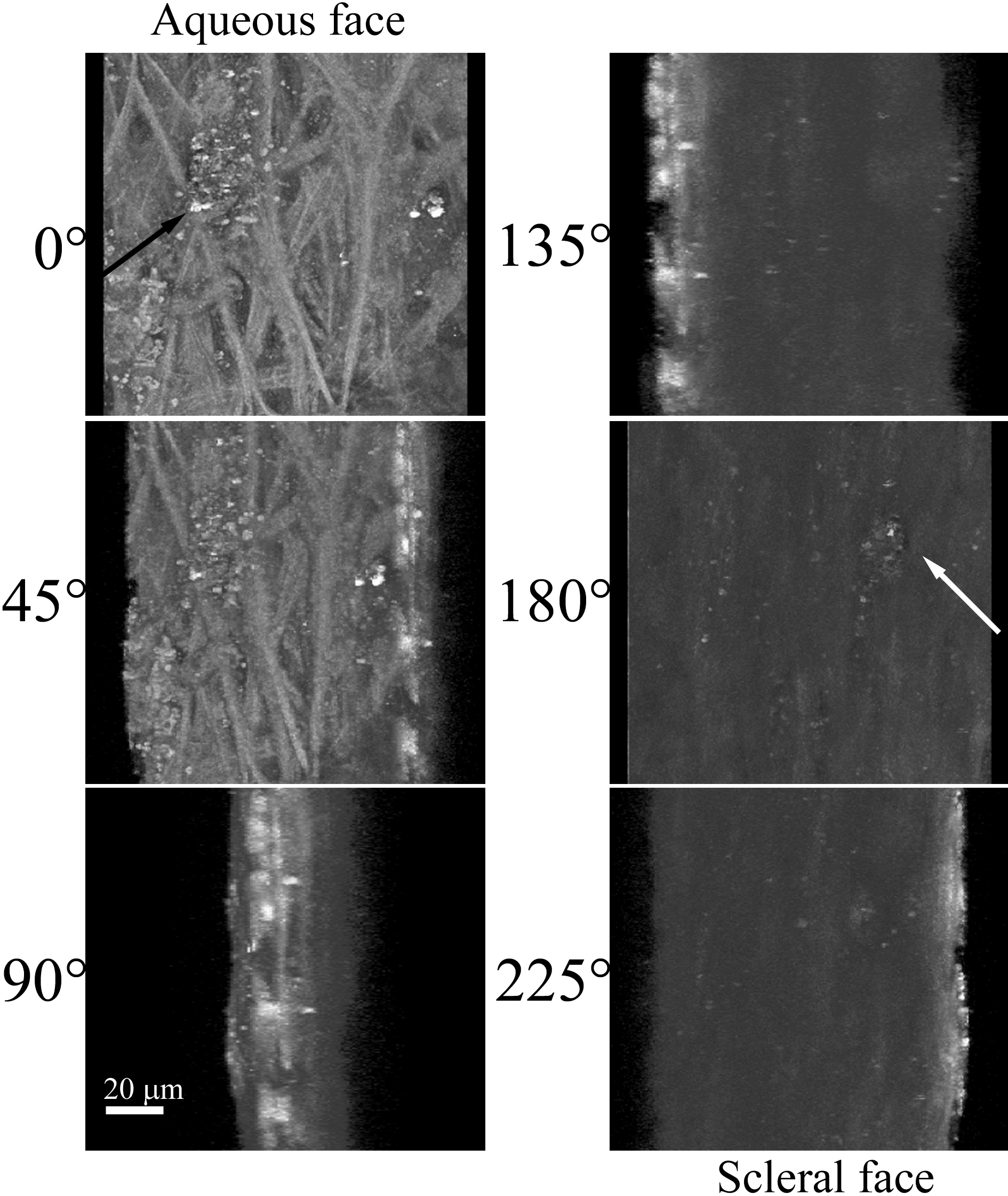 scleral-directed face. A non-fibrous structure present at the aqueous