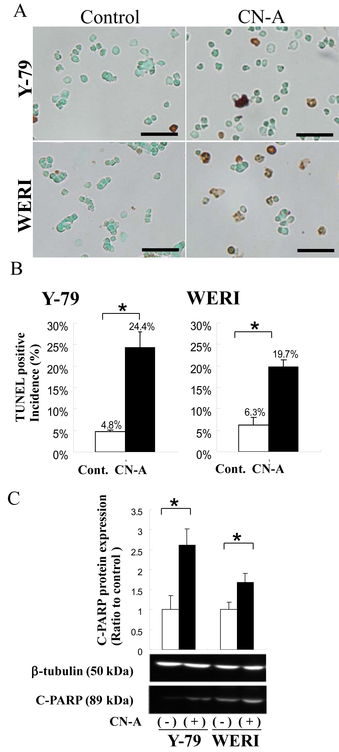 cells. The bar graph indicates C-PARP protein expression (n=3); the