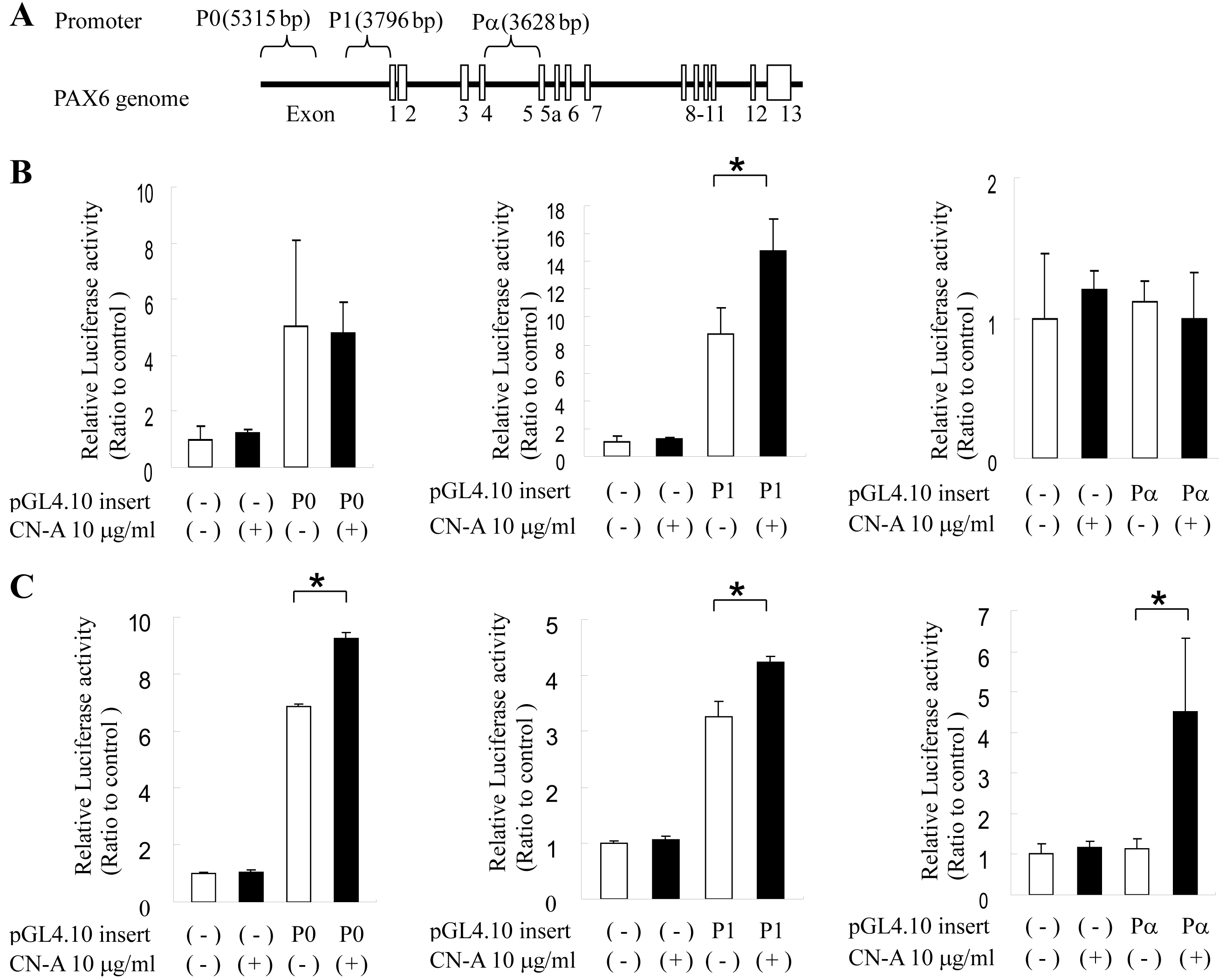 gene 6 (PAX6) promoter activity. A: Schematic indicates the
