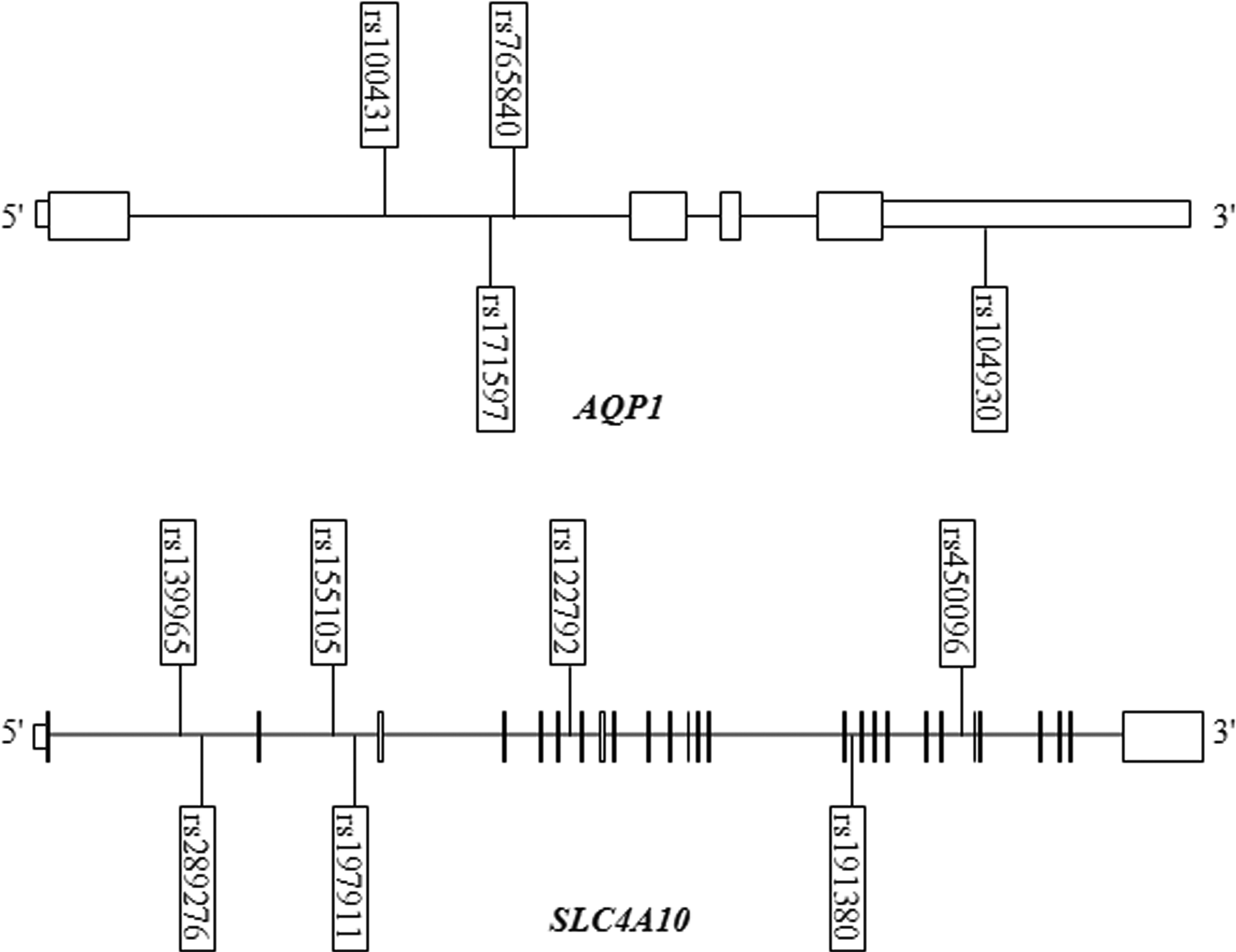 polymorphisms (SNPs) identified using HaploView software in the AQP1