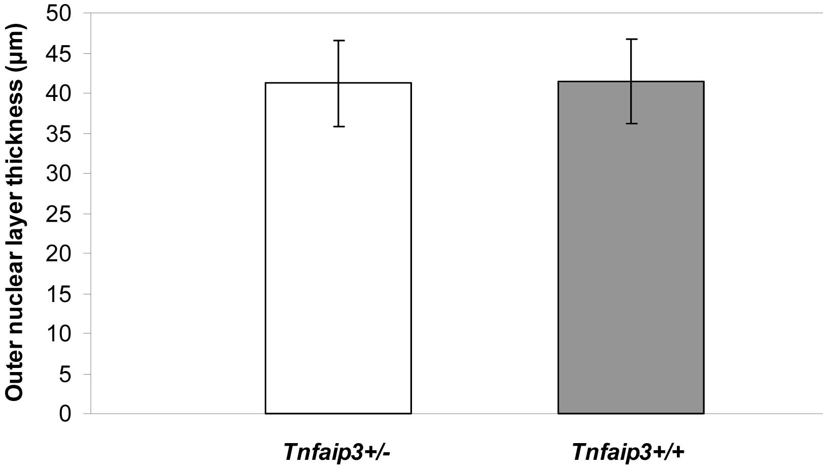 mice on a B6 background (N8–10). Outer nuclear layer thickness was compared between
