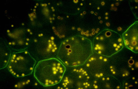 immunolabeled for the intermediate filament protein vimentin to illustrate a mosaic pattern of protein expression. Vimentin