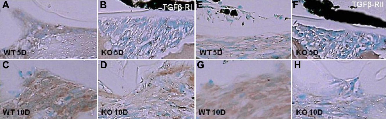 at day 10, immunoreactivity for TGFβ-RII was more prominent in the