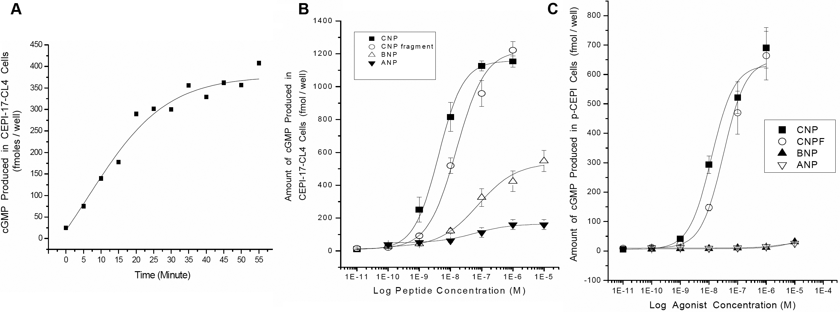 increase in cGMP induced by CNP fragment in CEPI-17-CL4 cells is shown.