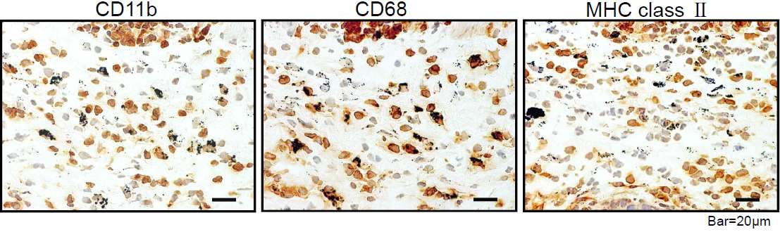 Figure 2. Samples were evaluated immunohistochemically to examine the expression of CD11b, CD68, and MHC class II.