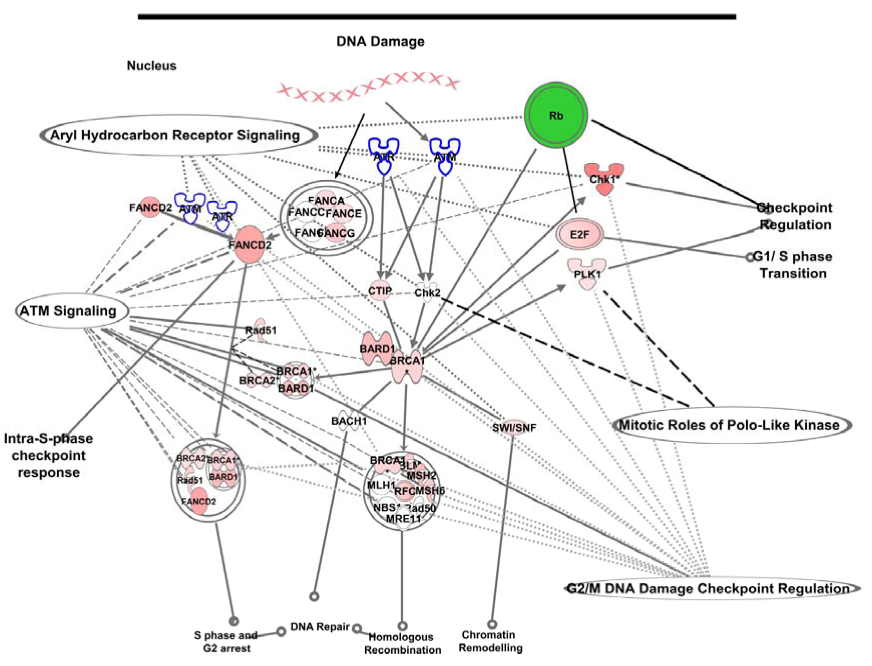 damage response pathway with breast cancer associated gene 1 (